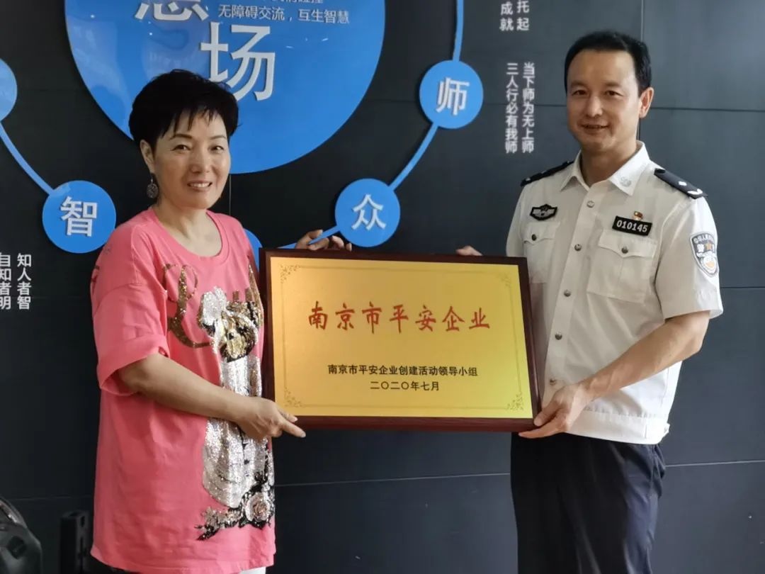 南京市公安局经济开发区分局李鹏局长莅临公司,授予公司“南京市平安企业”荣誉称号,公司董事长从金林代表公司接受了奖牌和证书。