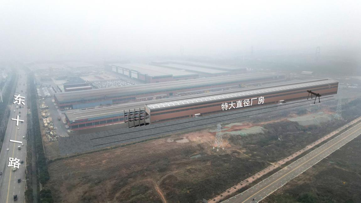 铁建重工超级地下装备及其关键核心零部件智能制造项目(一期),建筑面积34560平方米,其中特大直径盾构机厂房(E区)建筑面积为18900平方米,“197”厂房(H区)建筑面积为15660平方米。建筑层数均为1层,最高建筑高度33.25米。