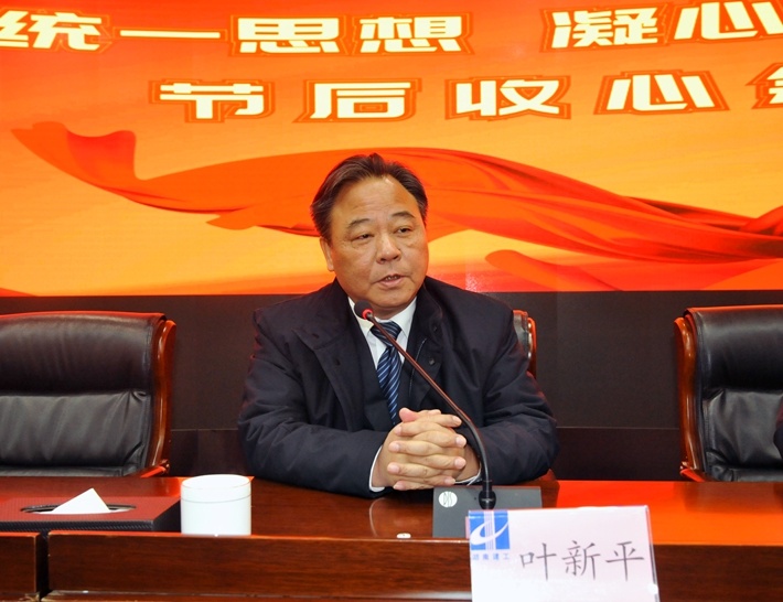 三楼收心会上,叶新平董事长向全体干部职工致以新春问候和美好祝愿,并对新一年的工作进行安排部署。他强调,广大干部职工要统一思想,凝心聚力,迅速转换状态,从“休假模式”调整为“工作模式”,以崭新面貌投入新一年的工作,为集团改革发展做出更大的贡献,以优异成绩向新中国成立70周年献礼。一是跑市场抓任务,跑现场抓管理,坚决实现一季度开门红。要认真传达落实党中央和习近平总书记关于2019年度开门红的要求,将压力转化为动力,确保实现一季度经营、产值、营收和税收指标,为国家和湖南经济社会发展做出更多贡献;要认真贯彻集团2019年度工作会议精神,对重点任务、重要指标、重要工作进行分解落实,确保圆满完成各项目标任务。二是攻坚克难、时不我待,坚决完成集团全面深化改革任务。全面深化改革是集团的大事、难事,也是今年的急事,时间紧、任务重、要求高,集团将全面开展改革创新工作,重点推进集团本部经营与管理职能分离、子公司股份制改革、职业经理人制度试点、区域整合、“三供一业”分离移交、“离退休人员”管理移交等工作,通过全面深化改革激活发展新动能。三是敢于担当、奋发有为,坚决超额完成年度目标任务。各单位要从现在抓起,从自身抓起,在全面落实集团2019年度工作目标任务的基础上,向实现全集团营业收入更高目标迈进。要坚定不移地推进六大战略合作;坚定不移地走出去,走出省门走出国门;坚定不移地发挥各生产经营单位的积极性;坚定不移地实施“三个区分开来”,营造干事创业的良好氛围。