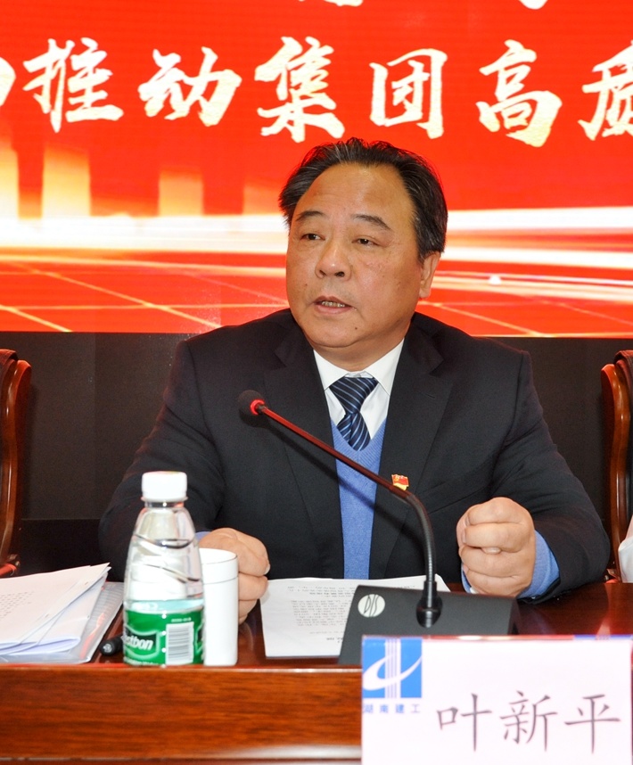 叶新平董事长指出,一是总结过去,转型发展有成效。2018年,是集团深入贯彻落实党的十九大精神,献礼改革开放40周年的一年。集团在省委省政府和省国资委的坚强领导下,在集团党委带领下,沉着应对,迎难而上,围绕进入“世界500强”的奋斗目标,深入推进实施“十三五”规划和“创新、转型、升级”发展战略,一手抓党建工作和党风廉政建设,一手抓改革和发展,较好地完成了各项工作目标,保持了稳中有进的发展态势,并逐步向高质量发展转型,取得了“党建引领优势发挥、转型发展成果呈现、产业结构布局优化、创新发展动能成长、品牌建设实力彰显、风险防控能力提升”等方面成绩。二是研判形势,保持定力增信心。要清醒地认识到,形势“危”“机”并存,梦想指引现实,集团上下应沉着冷静、未雨绸缪,保持定力、勇往直前,时刻铭记目标,保持战略定力,坚持正确导向,力争在3~5年内进入“世界500强”,努力将集团建设为卓越建工(省内先进、国内一流、具有国际竞争力现代建设投资集团),幸福建工(员工幸福指数高),魅力建工(积极履行社会责任,受人尊敬)。三是科学部署,凝心聚力谋发展。要以党的领导为第一保障,持续发挥党建引领作用,全面落实从严治党,夺取全省易地扶贫搬迁项目建设的全面胜利;要以企业发展为第一要务,打造实力雄厚企业,市场拓展要聚焦,创效措施要精准,科技研发要突破,风险防控要强化;要以改革创新为第一动力,打造动能充足企业,着力于全产业链发展、“双百行动”实施、三项制度改革;要以文化建设为第一引领,打造文化自信企业,推进企业标准化建设、文化系统建设、文化载体建设;要以人才开发为第一资源,打造阳光活力企业,加快推进减员增效、竞聘制上岗和契约化管理、人才储备培养以及加强企业领导人员队伍建设;要以增加福祉为第一重点,在关注员工身心健康、落实员工基本待遇福利、全心全意为职工群众办实事等方面下功夫,打造员工满意企业,增强企业的凝聚力和向心力。最后,他强调,2019年春节即将到来,各单位在谋篇布局的同时,要统筹安排,逐一落实年前的安稳消防、综治维稳、筹资收款、结账付款、勤政廉政、关怀慰问等系列工作,确保实现2019年一季度开门红,使广大职工、家属及农民工过一个开心快乐幸福团圆的春节。