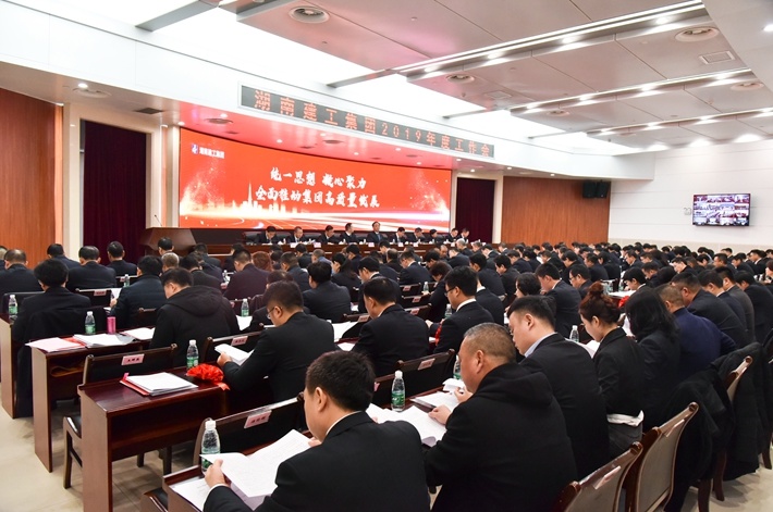 李湘波总经理在报告中回顾总结了集团2018年工作成绩,指出取得了“国企党建强力夯实、经济运行稳中向好、转型升级初显成效、改革改制稳步推进、基础管理持续加强、品牌形象显著提升、科技创新成果丰硕、职教事业融合发展、企业民生持续改善、国企责任彰显担当”等十个方面的好成绩。关于2019年工作思路,他强调主要做好六个方面工作:一是突出党建引领新高地。要夯实党建工作基础、优化廉洁发展环境、落实群团重点工作。二是聚焦市场实现新突破,要在传统市场、区域市场、新兴市场、海外市场、投资市场、完善经营管理上求突破。三是深化改革激活新动能。要推进法人治理结构完善、推进“双百行动”改革步伐、推进改制遗留问题解决、推进三项制度改革落地、推进管理模式创新升级。四是优化结构培育新增点。要优化产业结构、推进重组并购、纵深产业链条、完善产权结构、深化产融结合。五是夯实管理谱写新篇章。要加强机关职能建设、加强财务资金管理、提升项目管控水平、加强人力资本管理、推进科技创新发展、加强审计监督力度、加强商务成控管理、加强投资运营管控、加强法律风险防范、加强高校内涵建设、强化信息化发展保障。六是履行责任彰显新担当。要抓好精准扶贫、维护和谐稳定、办好实事工程,确保职工幸福感与企业大发展同步提升。