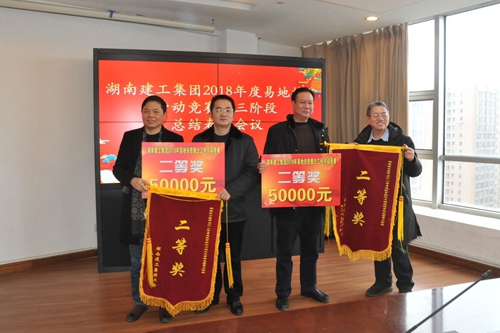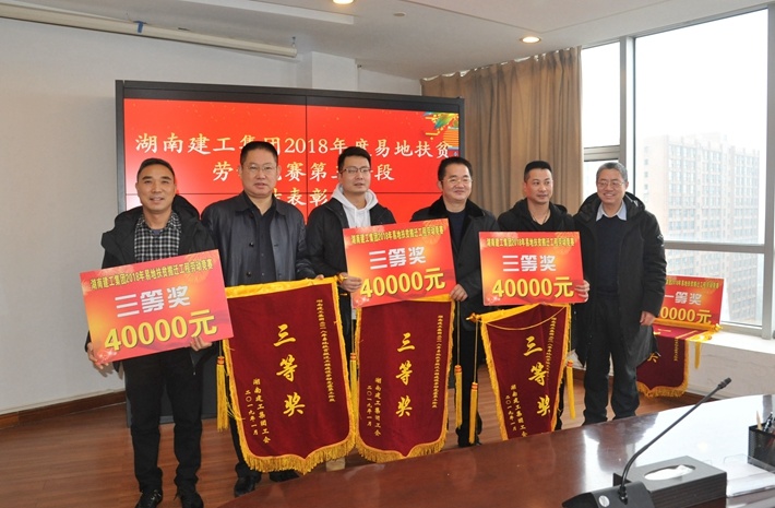 会议还宣读了《关于表彰集团2018年度易地扶贫搬迁工程劳动竞赛第三阶段先进集体和先进个人的决定》,与会领导为先进单位代表颁奖。其中集团四公司获2018年度易地扶贫搬迁工程劳动竞赛第三阶段“一等奖”;集团三公司、本部房地产公司2家单位获“二等奖”;集团六公司、本部华西工程局、本部总承包工程公司3家单位获“三等奖”;华容县操军安置点刘聪水电班组等50个班组获“先进班组”;唐荣林等120名同志获“岗位明星”。