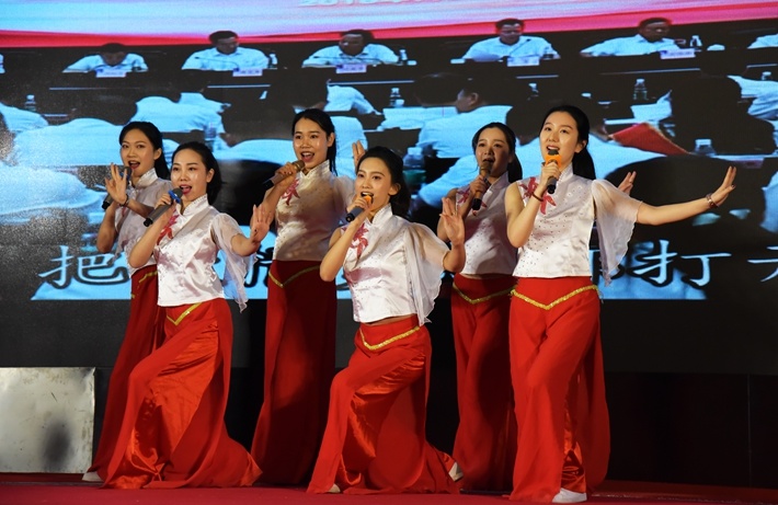 表彰大会后,集团各参建单位和集团艺术团带来的文艺演出在新颖欢快的《喝彩建工》中拉开帷幕,声情并茂的诗朗诵《武陵颂》,宛转悠扬的舞蹈《‘荷’韵武陵山》等精彩节目接连不断,高潮迭起,歌声、掌声、欢笑声不绝于耳,演员们个个精神饱满、情绪高昂,拿出最好的状态奉献观众,让大家一饱眼福。
