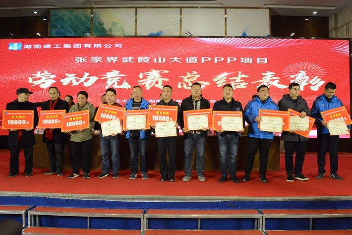 为确保按期完成通车目标,集团精心组织开展武陵山大道PPP项目劳动竞赛,各参建单位全线形成“你追我赶、互相促进、争先创优”良好竞赛氛围,在为期4个多月的劳动竞赛期间,该项目涌现出一大批优秀团队和优秀个人。其中,城区段三工区等9个工区荣获优秀工区;项目指挥部工程管理部等22个集体荣获优秀集体;项目指挥部杨勇、华西工程局张积武、交建公司郭虎3位同志荣获优秀责任单位领导;城区段唐乐人、景区段刘升红等6名同志荣获优秀项目经理(工区长);易季爰、刘建、翟建辉等60名同志荣获岗位明星;蔡先忠同志荣获特别贡献奖。