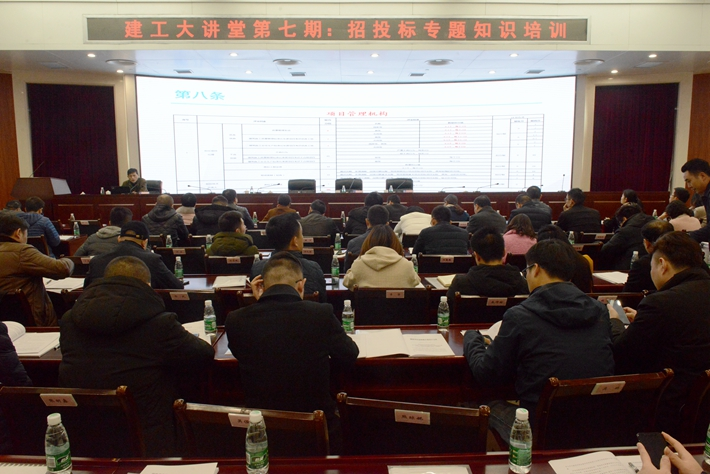 我省建筑行业招标投标市场日益规范,为准确掌握行业最新政策,精准落实有关文件新要求,切实解决招投标工作中的疑难问题,12月26日,“建工大讲堂”第七期培训在集团本部三楼会议室举行,全方位解析我省工程施工招投标文件精神。省住建厅建设监督处党支部副书记朱满红、省招投标协会秘书长许欣等出席,集团工会主席熊用机主持培训讲座,集团相关管理部室负责人,所属各单位、本部经营单位分管负责人及相关工作人员近300人参