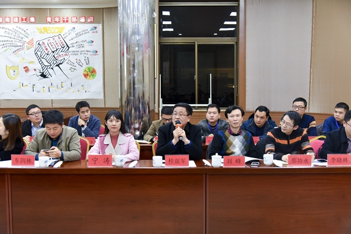 12月24日晚上,集团青年干部培训班小组讨论会在中南林业科技大学培训楼报告厅成功举行,50名学员围绕“青年干部成才的关键因素是什么”展开交流讨论。集团人力资源部部长桂兹军宣布班训并作总结讲话,中南林业科技大学培训部主任邢协永,集团人力资源部、各单位分管领导及人力资源部负责人参加。
