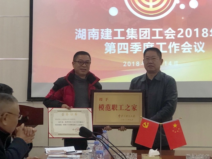 12月14日上午,集团工会第四季度工作会议暨传达贯彻中国工会十七大精神会议在集团六公司承建的湖南广播电视台节目生产基地项目部召开。会议传达学习了习近平总书记在同中华全国总工会新一届领导班子成员集体谈话时的重要讲话和中国工会十七大精神,安排部署集团工会学习贯彻落实工作,并表彰了“全国模范职工之家”“全国‘安康杯’竞赛优胜单位”“全国‘安康杯’竞赛优胜班组”等先进集体。集团工会主席熊用机传达习近平总书记重要讲话精神和中国工会十七大精神并讲话。集团工会副主席黎劲主持会议。集团所属单位工会主席(负责人)、工会办主任、集团六公司基层工会主席、集团工会办等40余人参会。